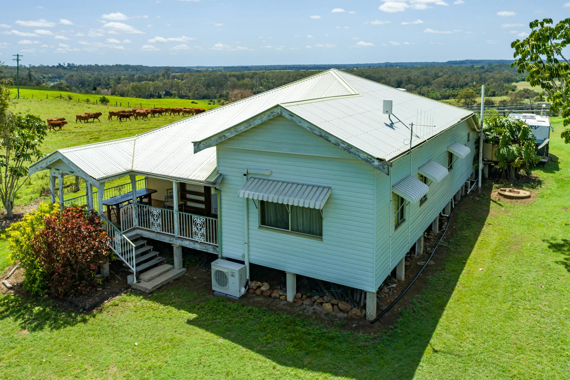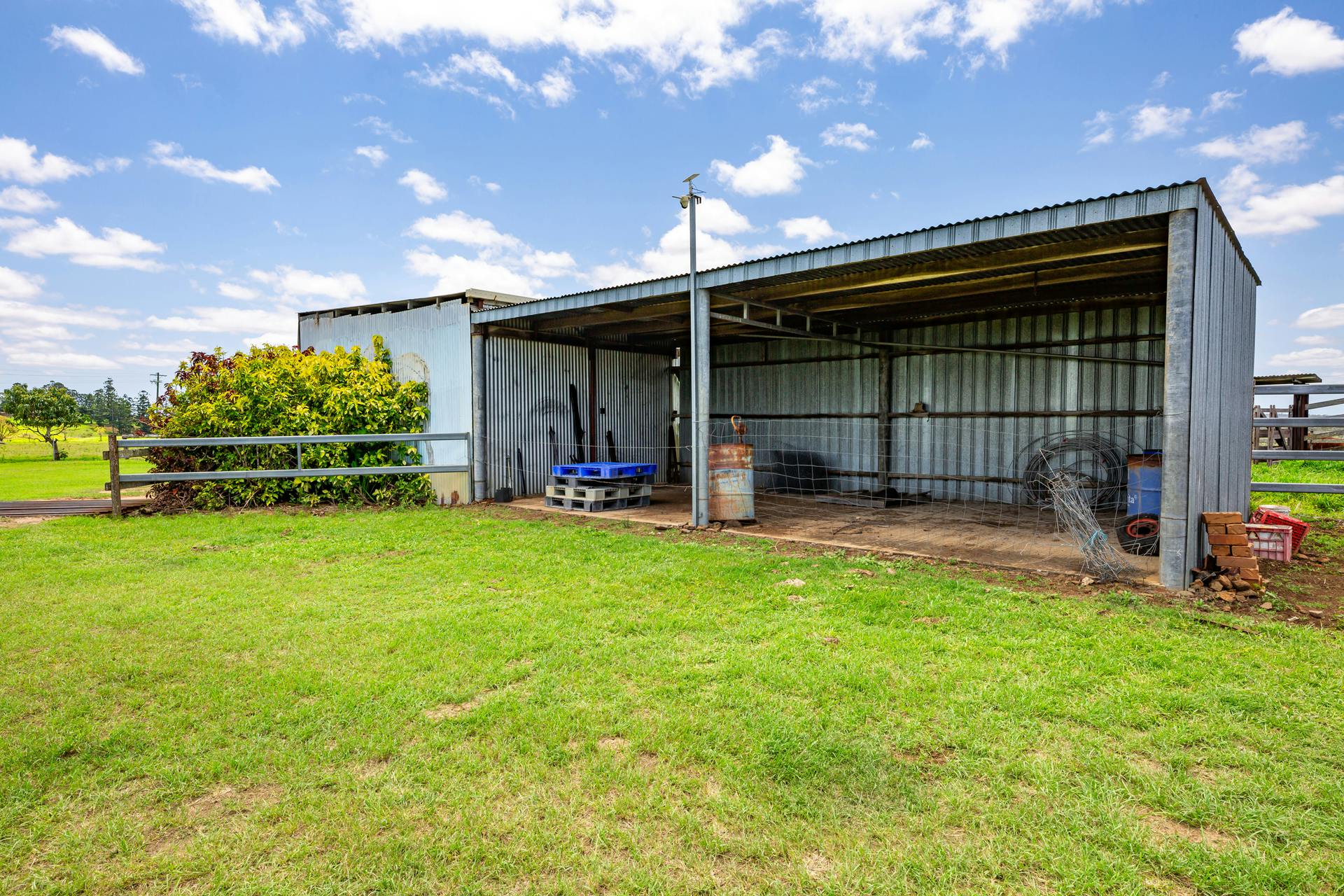Improvements include a charming three-bedroom Queenslander homestead featuring open-plan living, air conditioning, an office, sunroom, and ensuite to the main bedroom. A double-plus garage provides ample vehicle storage.